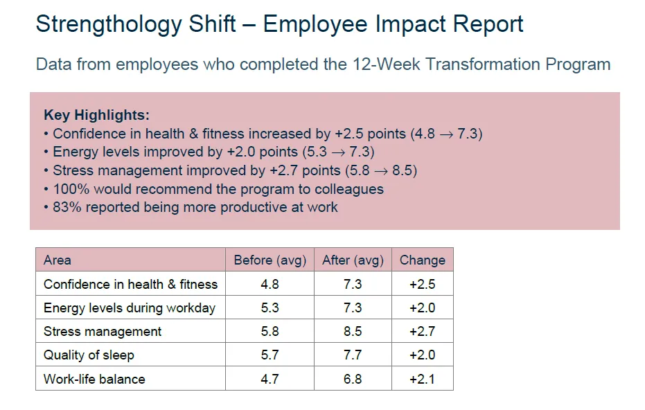 This isn’t a one-size-fits-all app. Strengthology delivers 1:1 expert support to help employees transform their physical and mental wellbeing with a tailored, sustainable, realistic programme designed for real lives.